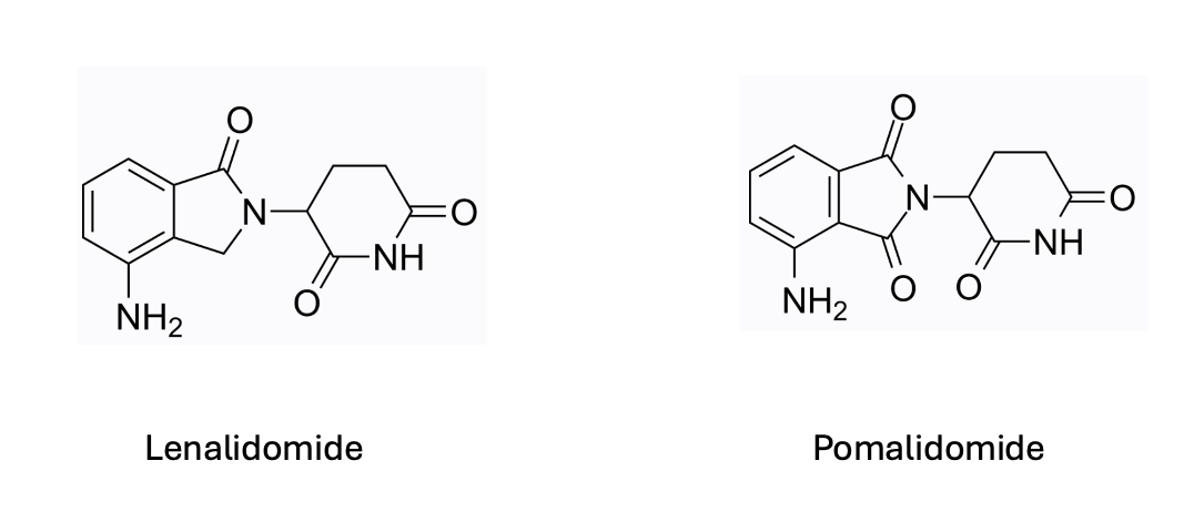 You might wonder how molecular glues, which are small molecules themselves, can target proteins that lack deep binding pockets. This becomes clearer when you consider lenalidomide (Revlimid), a thalidomide derivative that effectively treats multiple myeloma and several blood cancers. Lenalidomide induces the degradation of IKZF1 and IKZF3, transcription factors crucial in multiple myeloma. These transcription factors, like many others, lack deep binding pockets and are challenging to target with small molecules. However, lenalidomide manages to degrade them by "gluing" them to a component of the E3 ligase complex known as Cereblon (CRBN). Once attached, the E3 ligase complex tags these transcription factors for degradation by the proteasome.